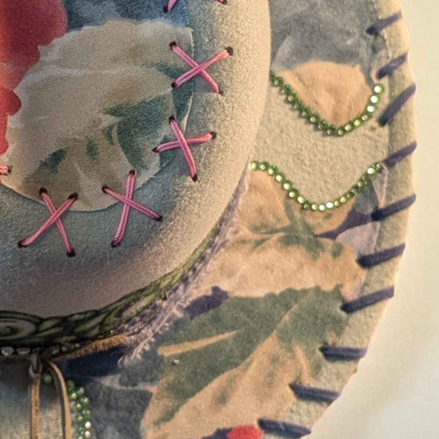 Discover the artistry of these uniquely decorated hats, showcasing vibrant colors and one-of-a-kind designs crafted with a diverse array of inks, paints, gel crayons, fabrics, leather and a variety of embellishments. Each hat is a masterpiece, as no two are alike! Designed to be water-resistant and sealed with a light matte varnish, these hats are not only stylish but also practical. Crafted from a durable cotton-poly blend, it not only provides warmth on cooler days but also offers refreshing shade when the sun is at its peak. Make a bold statement while enjoying comfort and protection all year round.
