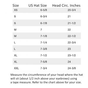 The sizing chart below will help determine if this hat is a good fit for you. Use a string around to measure the circumference of your head. See the chart for your size.