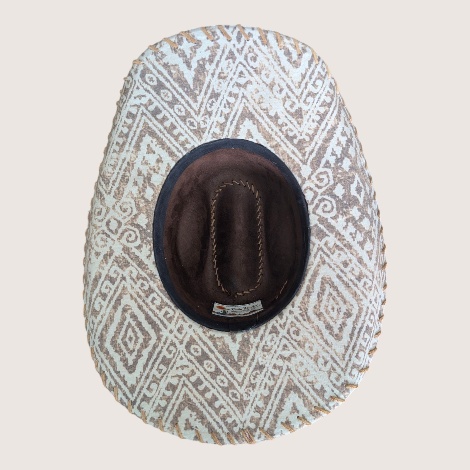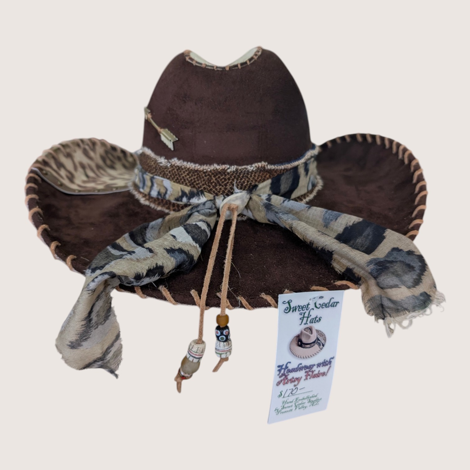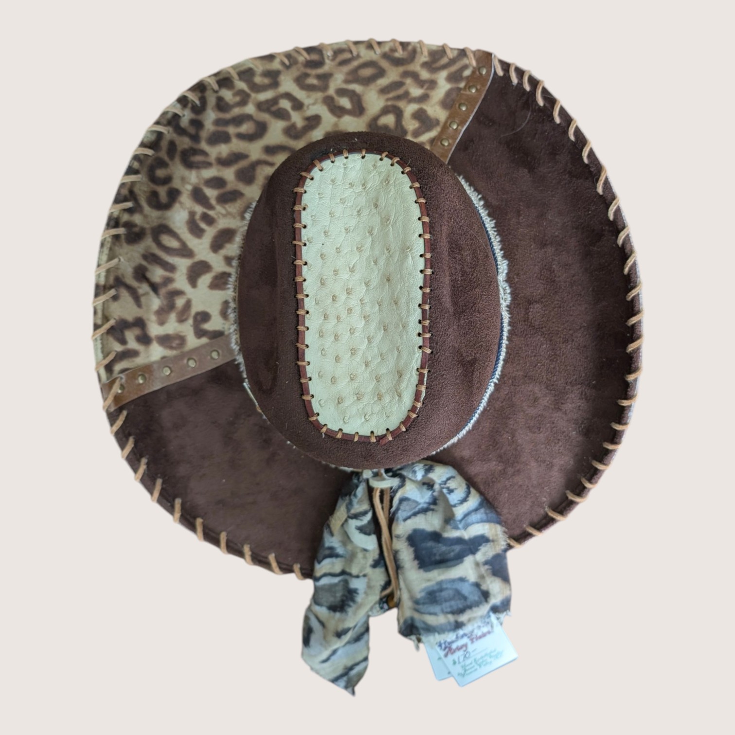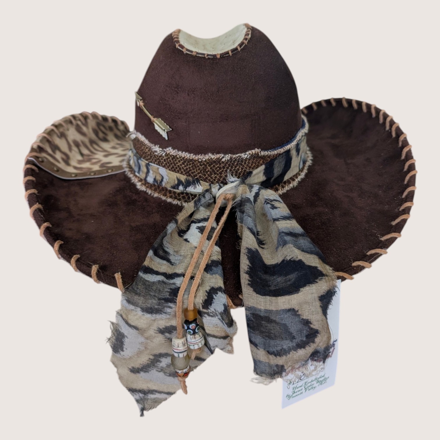 Discover the artistry of these uniquely hand-painted and embellished hats. These beautiful hats feature vibrant colors and one-of-a-kind designs crafted with a diverse array of fabrics, leather, metal accents, rhinestones, lacing, gems, and feathers. Each hat is a masterpiece, as no two are alike! Every hat is treated with a UV light blocker, and Scotch Guard, making them not only stylish but also practical. Crafted from a durable cotton-poly blend, they not only provide warmth on cooler days but also offer refreshing shade when the sun is at its peak. Make a bold statement while enjoying comfort and protection year-round.